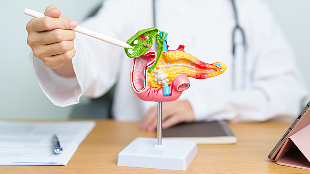 Это полый орган, расположенный под печенью. Основная его функция — накапливать и выделять желчь для переваривания жиров и всасывания жирорастворимых витаминов в кишечнике.