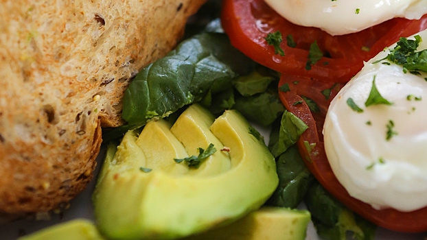 Цельнозерновой тост с авокадо. На 1 ломтик цельнозернового хлеба приходится 69 ккал, на 50 г авокадо — 80 ккал. Благодаря сочетанию клетчатки и полезных мононенасыщенных жиров вы будете чувствовать себя сытым до следующего приёма пищи.